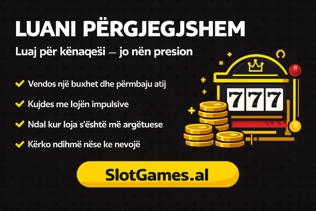 Me rritjen e popullaritetit të platformave online të lojërave të fatit në Shqipëri, rëndësia e lojës së përgjegjshme po merr vëmendjen që meriton. SlotGames.al — një ndër faqet më të vizituara të informimit rreth lojërave, bonuseve dhe trendeve të tregut — po intensifikon thirrjen e saj për lojë të arsyeshme dhe ndërgjegjësim më të madh tek lojtarët shqiptarë.
